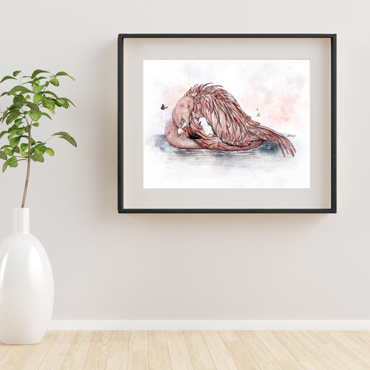 Flamingo Mother and Baby — 20x30 Signed Wall Art Print | Humpback Illustration | Limited to 5