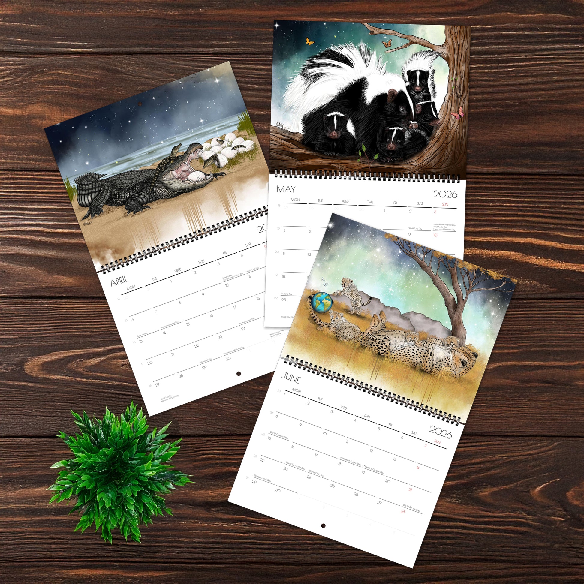 2026 Wildlife Calendar—Mother and Baby Animals Wall Calendar | Nature Art Illustrations